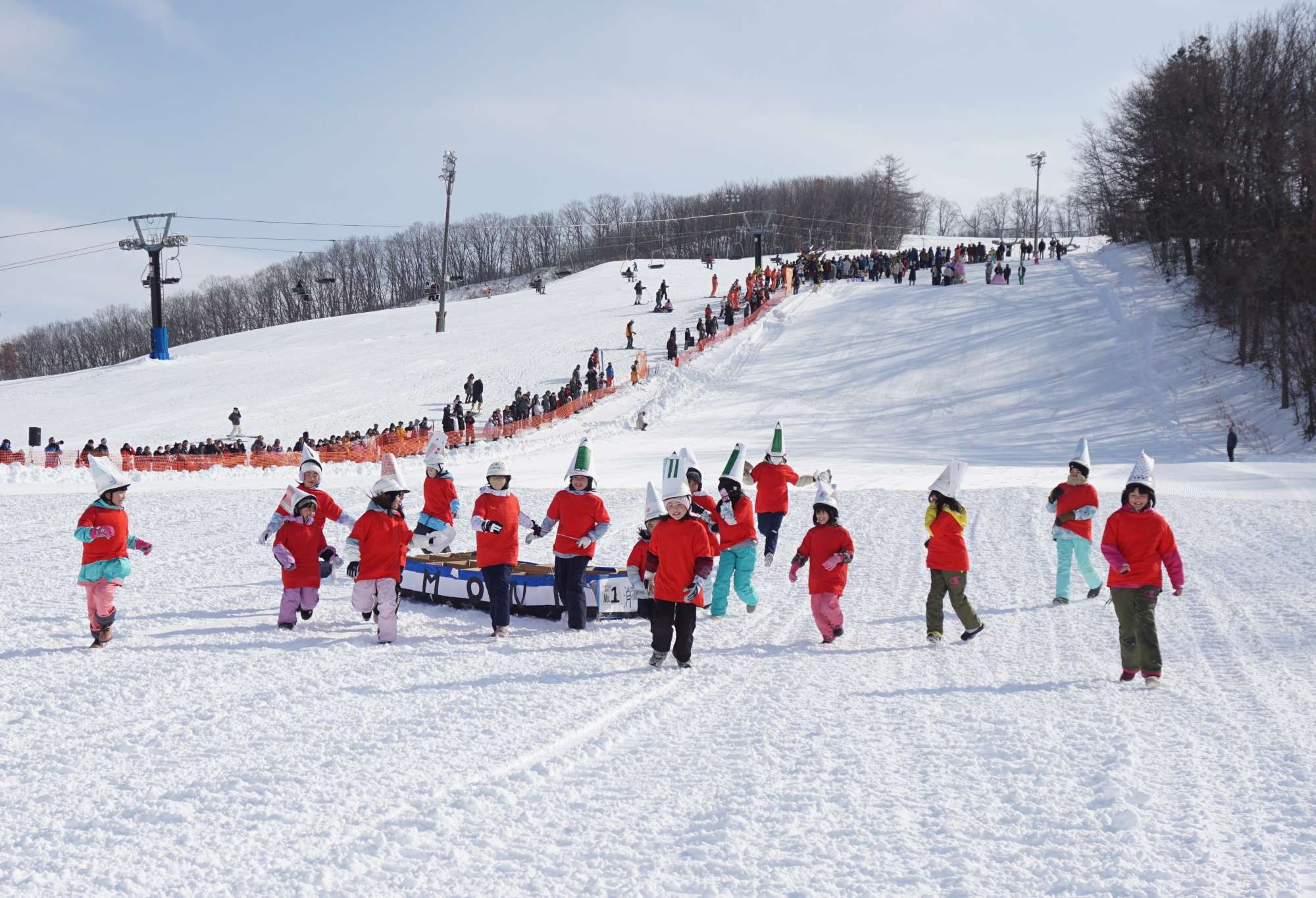 ナウマン全道そり大会実行委員会主催の「第42回忠類ナウマン全道そり大会」が忠類白銀台スキー場特設会場で開催されました。町内外合わせて53組、115人もの方にご参加いただき熱いレースを繰り広げられました。今回から小学生スピード部門と親子スピード部門が新設され、家族でより一緒に楽しむことができるように内容になりました。素晴らしい出来栄えのそりと工夫を凝らした衣装で、会場を大いに盛り上げていただきました。