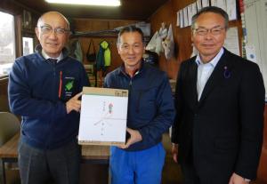 向かって左から、飯田町長、藤寿会後援会 木川茂男 会長