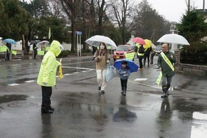 毎年、新入学児童の交通安全街頭啓発を「春の全国交通安全運動」に合わせて実施しております。今年は町内8校の小学校で189人の新1年生が入学しました。子どもたちが交通事故に遭わず毎日楽しく安全に通学し、学校生活を過ごせるよう心から願っています。